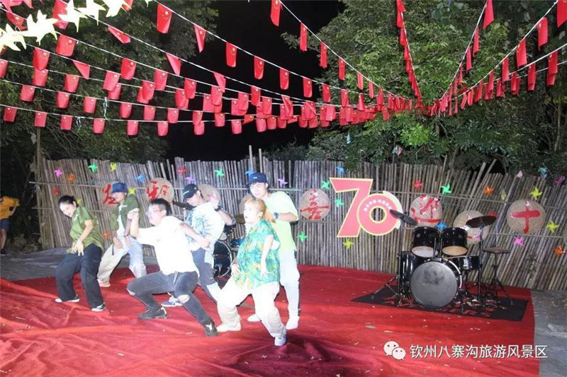 國慶期間景區(qū)舉辦以“炫彩八寨喜迎70華誕”為主題活動,受到眾多游客親睞。游客們白天可以觀看精彩歌舞文藝演出,賞彩虹風(fēng)車展,玩真人CS運動,體驗欽州第一漂的八寨溝森林漂流,登山泡山泉潑水狂歡,徒步暢游原始森林的美景,呼吸天然氧吧里的新鮮空氣,整個景區(qū)呈現(xiàn)一片游客如織、喜樂融融的景象。