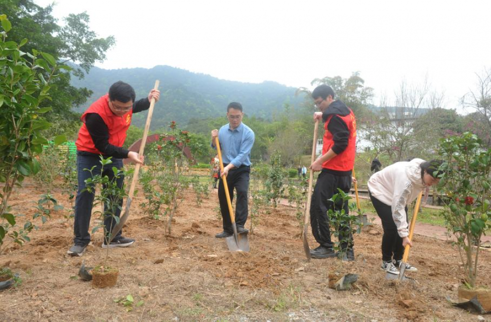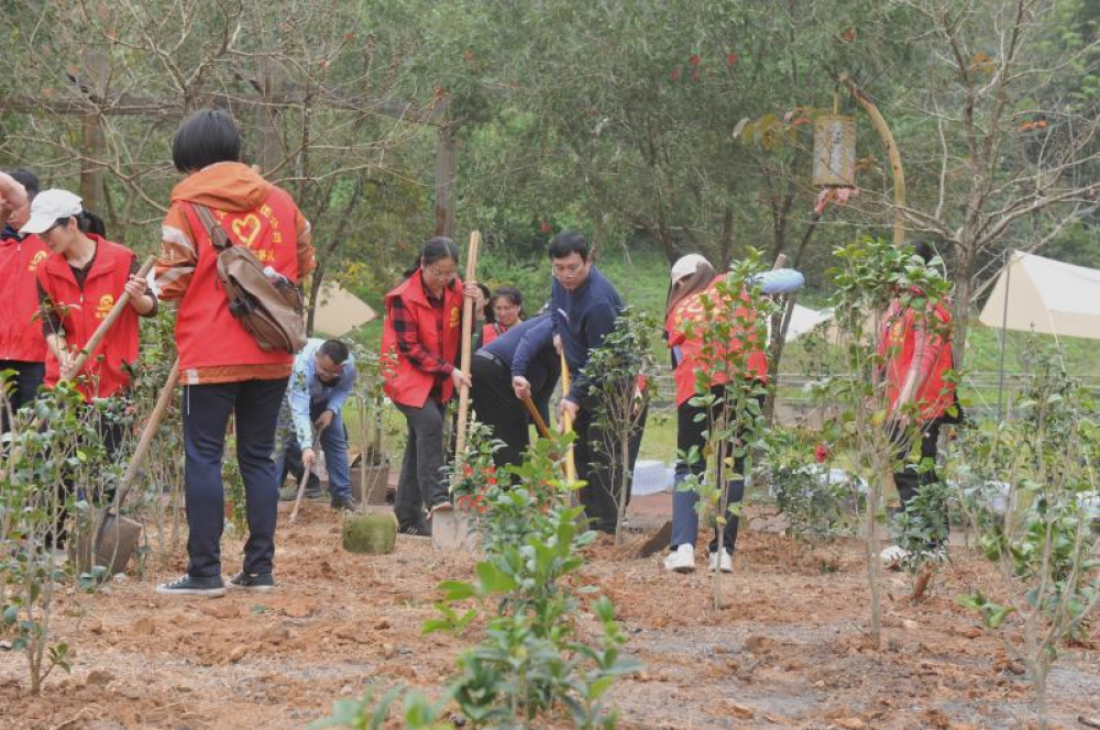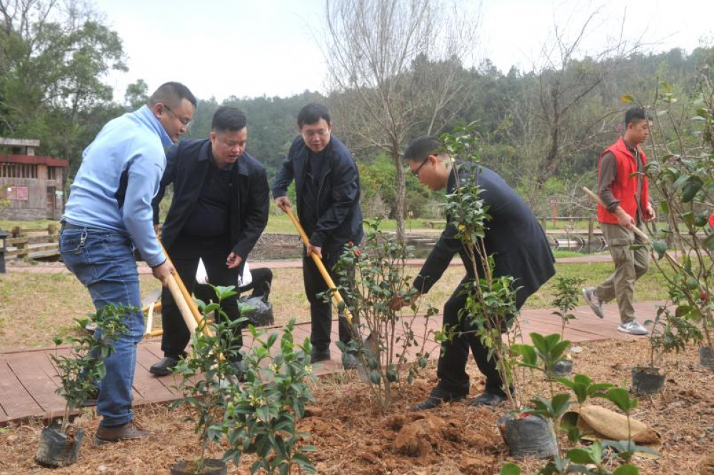 活動現(xiàn)場,全體人員積極投身于添綠行動中,揮鍬鏟土、扶苗填土、提水澆灌,大家分工協(xié)作、相互配合、熱情高漲。經(jīng)過2個小時緊張的勞動,一排排新栽種的桂花、山茶花樹苗亭亭玉立,展現(xiàn)勃勃生機(jī),為初春的景區(qū)大地增添了絲絲活力。