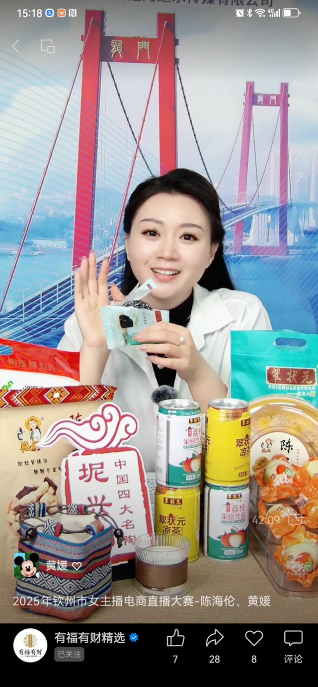 比賽采使用欽州市融媒體中心官方賬號“有福有財(cái)精選”在規(guī)定的1.5小時(shí)內(nèi)進(jìn)行直播帶貨。期間,參賽者需自行策劃直播流程、設(shè)計(jì)話術(shù)、與觀眾互動(dòng)等。比賽主要考察參賽者的主題把握、內(nèi)容創(chuàng)新、直播節(jié)奏掌控及帶貨能力等。在此次比賽中,陳海倫與黃媛充分展現(xiàn)出精湛實(shí)力,憑借精彩發(fā)揮與卓越表現(xiàn)一路過關(guān)斬將。在她們比賽直播期間,集團(tuán)公司全體員工懷著高漲的熱情,紛紛涌入直播間,大家積極發(fā)送彈幕為她們加油鼓勁,點(diǎn)贊助力,滿屏的支持與鼓勵(lì)營造出熱烈氛圍。最終,在全體員工的殷切期盼與加油聲中,陳海倫與黃媛不負(fù)眾望,成功斬獲個(gè)人賽二等獎(jiǎng)的優(yōu)異成績 。