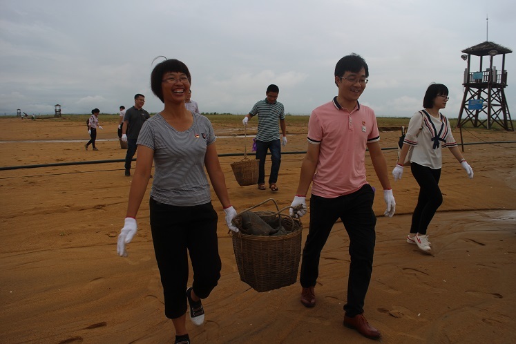 風(fēng)雨停歇之時(shí),第一、二黨支部全體黨員捋起袖子,提起垃圾筐,在黃金浴場(chǎng)上進(jìn)行“拉網(wǎng)式”清撿垃圾活動(dòng)?;顒?dòng)中,大家分工協(xié)作,團(tuán)結(jié)互助,忙得不亦樂(lè)乎,現(xiàn)場(chǎng)一片熱火朝天的景象。沙灘上的垃圾大多為煙蒂、石頭、礦泉水瓶等,考慮群眾在沙灘上大都赤腳走路,為了群眾的安全,黨員們將沙灘上的貝殼也都一并清撿,清除貝類劃傷的風(fēng)險(xiǎn)。其中一位老黨員向大家說(shuō)到:“大家一定不要覺(jué)得清潔活動(dòng)就只是單純地?fù)炖?,我們撿的可都?lsquo;黃金’啊,別看小小一個(gè)煙蒂,我們把它撿起來(lái)了,環(huán)境就美了,群眾就會(huì)更加自覺(jué)了,那么誰(shuí)也不舍得扔下手中的這枚‘黃金’了。所以,我們黨員今天的清潔行動(dòng)不僅是推行群眾文明出行的理念,更是引導(dǎo)群眾自覺(jué)保護(hù)環(huán)境,關(guān)愛(ài)自然,從而讓清潔、環(huán)保成為每個(gè)人的責(zé)任。”老黨員看似平淡的話語(yǔ),卻是對(duì)我們的諄諄教導(dǎo),進(jìn)一步激發(fā)了我們身為一名共產(chǎn)黨員的責(zé)任感和使命感,同時(shí)也讓我們深刻認(rèn)識(shí)到生態(tài)環(huán)境建設(shè)和保護(hù)迫在眉睫。