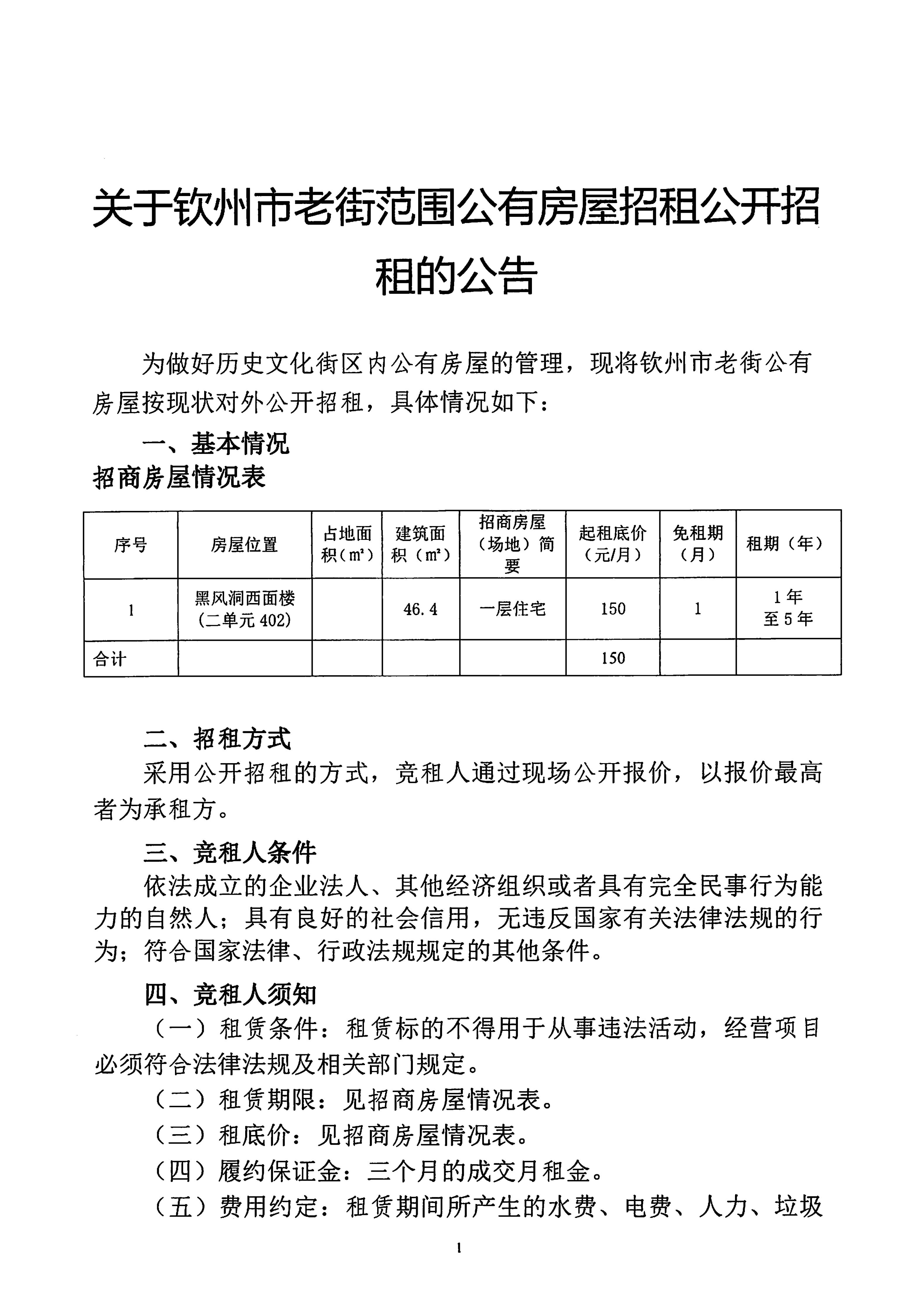關(guān)于欽州市老街范圍公有房屋招租公開(kāi)招租的公告(黑風(fēng)洞西面樓二單元402)