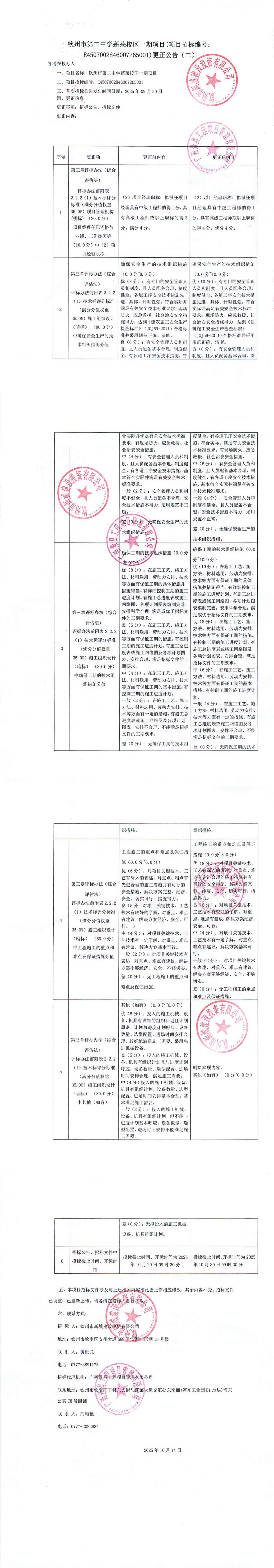 欽州市第二中學(xué)蓬萊校區(qū)一期項目監(jiān)理(項目招標(biāo)編號:E4507002846007274001)更正公告(一)