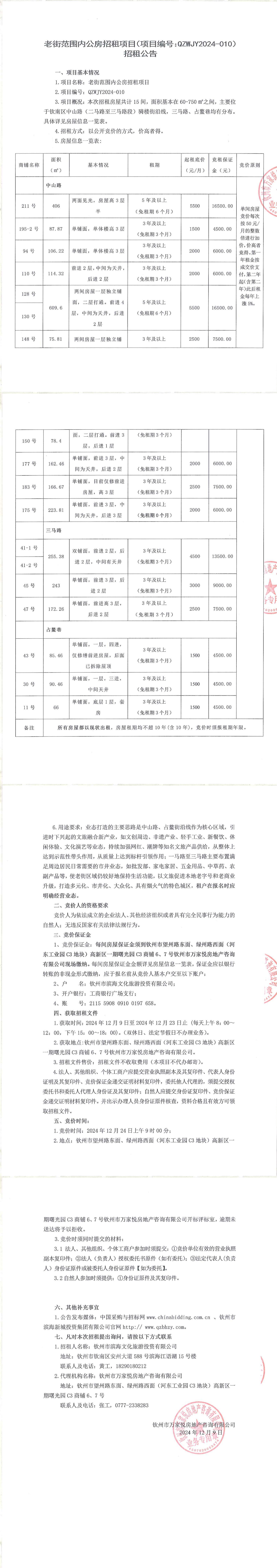 欽州市濱海文化旅游投資有限公司關(guān)于欽州市老街范圍一馬路5、6號(hào)房屋公開(kāi)招租結(jié)果公示