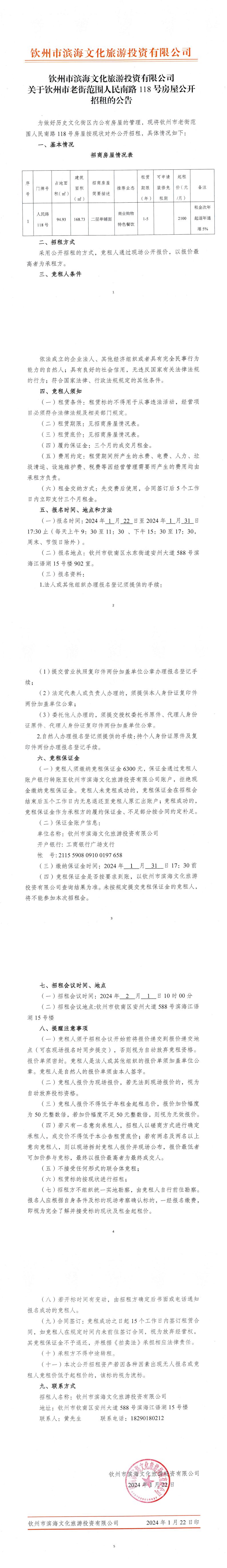 關(guān)于欽州市老街范圍人民南路118號(hào)房屋公開招租的公告