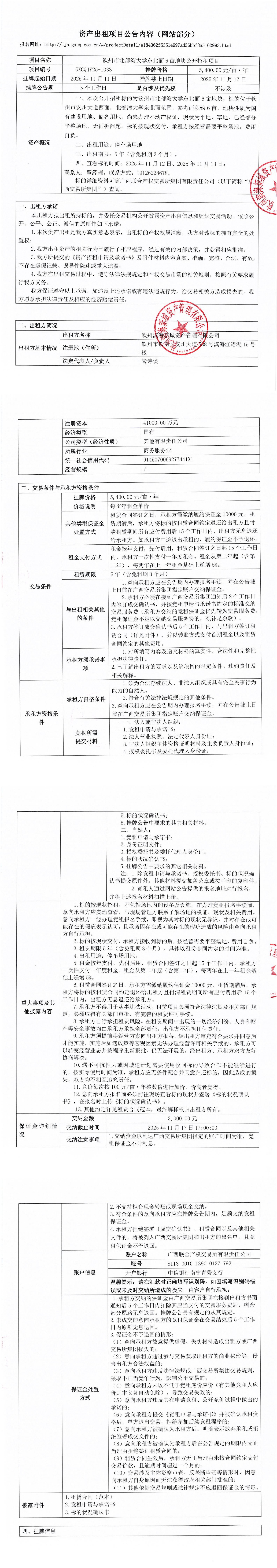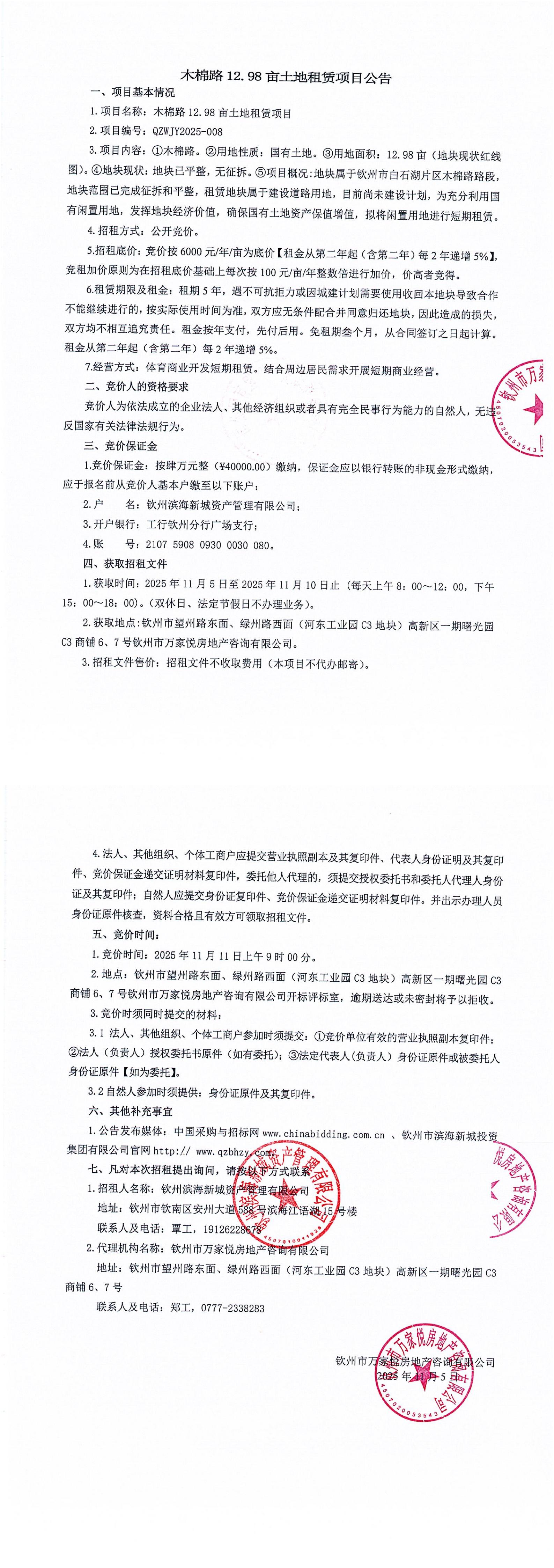 欽州市北部灣大學東北面6畝地塊公開招租項目