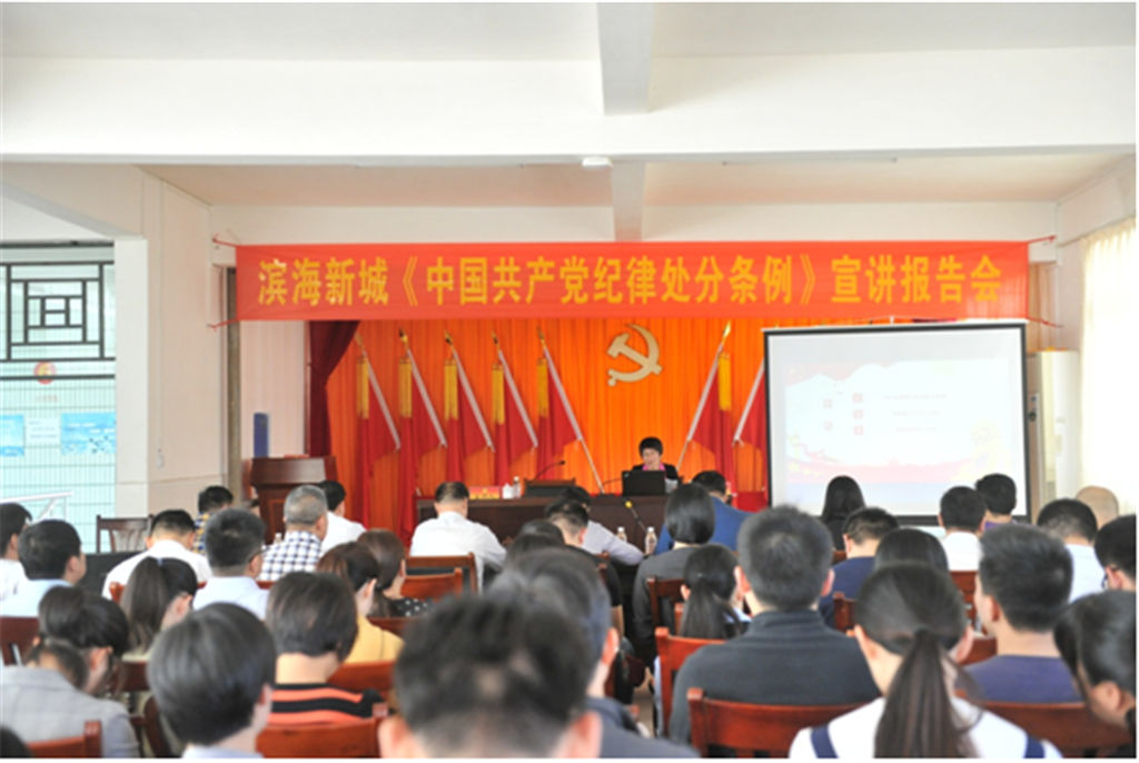 11月28日下午,市紀(jì)委駐市國(guó)資委紀(jì)檢組到市濱海新城召開(kāi)《中國(guó)共產(chǎn)黨紀(jì)律處分條例》宣講報(bào)告會(huì),對(duì)新修訂的《中國(guó)共產(chǎn)黨紀(jì)律處分條例》進(jìn)行了專(zhuān)題宣講。綜合監(jiān)督單位市濱海新城管委、市濱海置業(yè)集團(tuán)公司共70多名黨員領(lǐng)導(dǎo)干部聽(tīng)取了宣講。