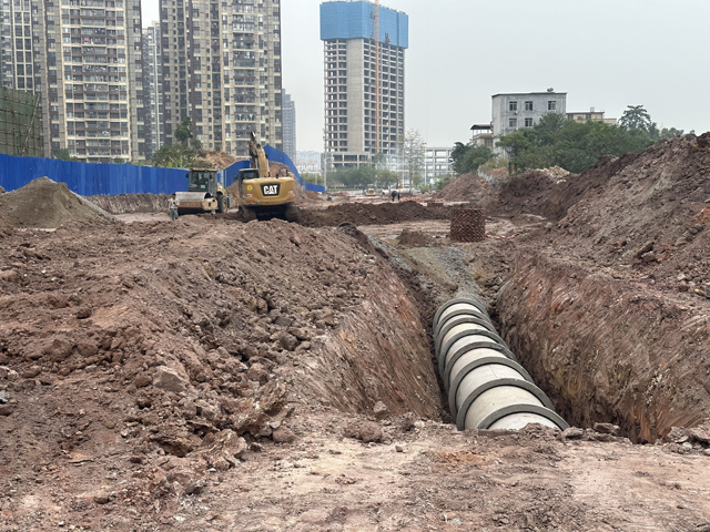 菩提路項目:該項目凌云街至平山東大街段已于11月1日正式開工,施工單位已進場完成全段的清表工作及不良土的清除,已完成洗車平臺及工地大門等施工臨時設施建設,現開挖約300米污水管道、300米雨水管道及完成雨污水管各250米回填砂。