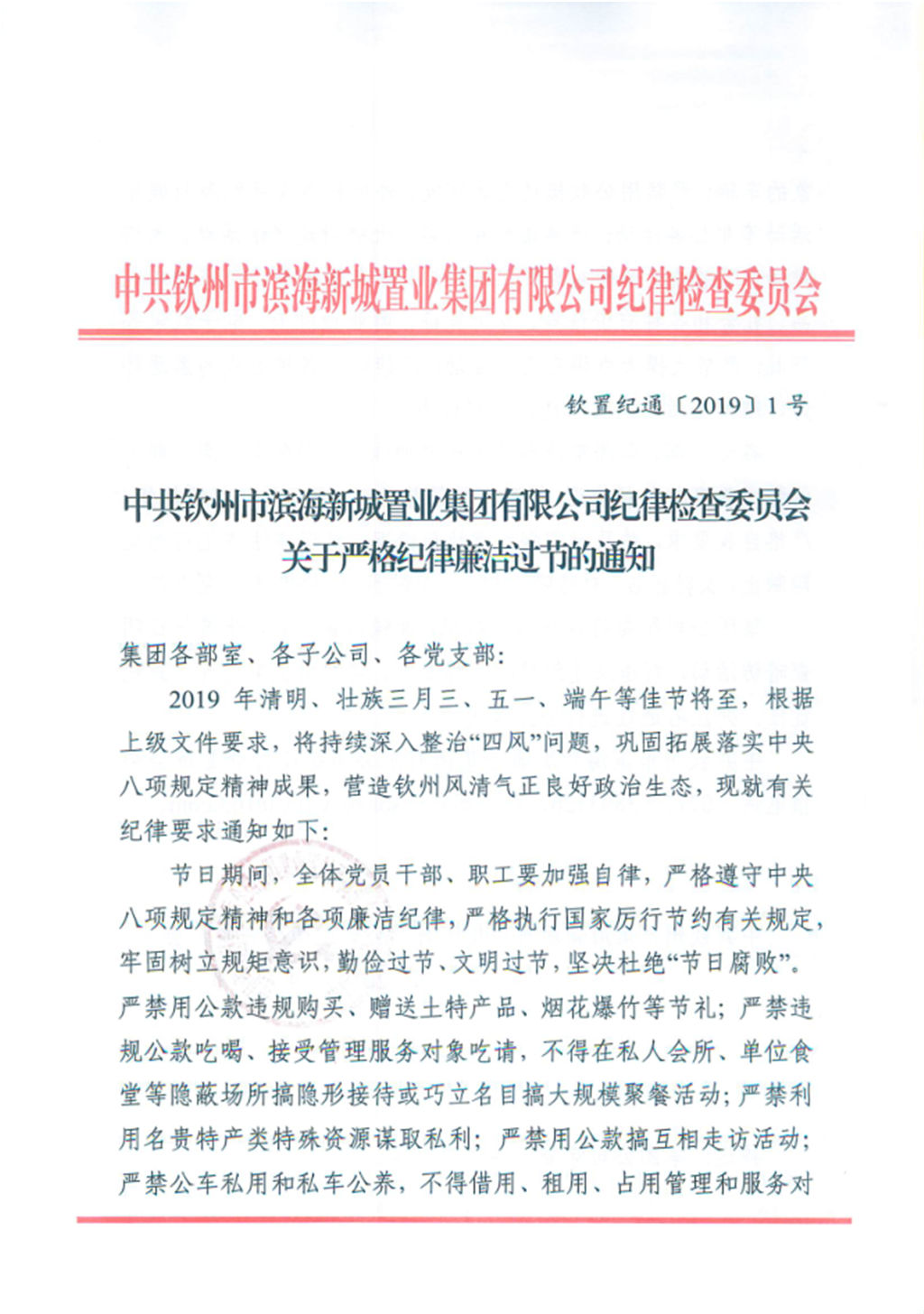 集團公司紀(jì)委印發(fā)了《關(guān)于嚴(yán)格紀(jì)律廉潔過節(jié)的通知》