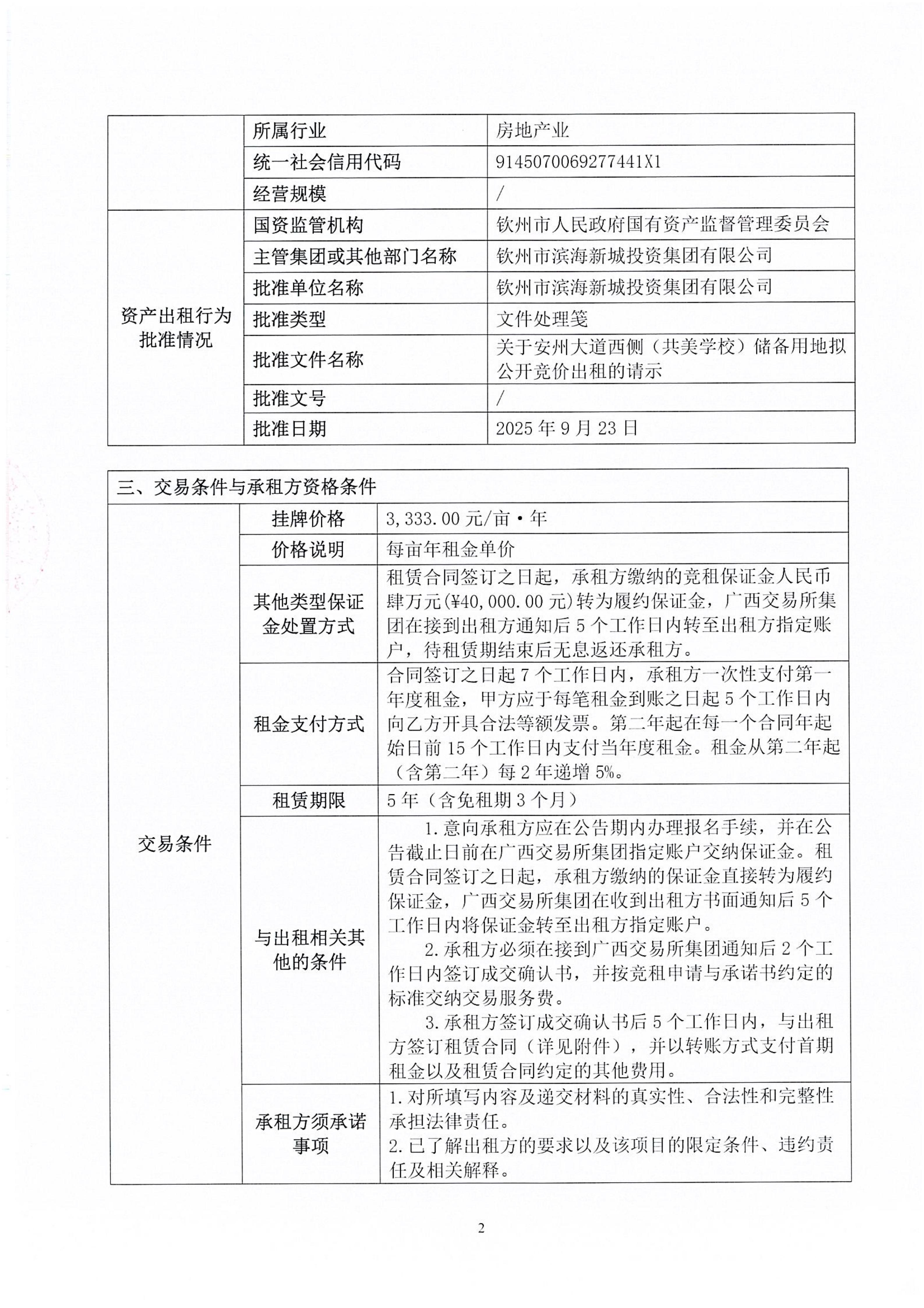 欽州市欽南區(qū)安州大道西側(cè)(共美學校)儲備用地公開招租項目